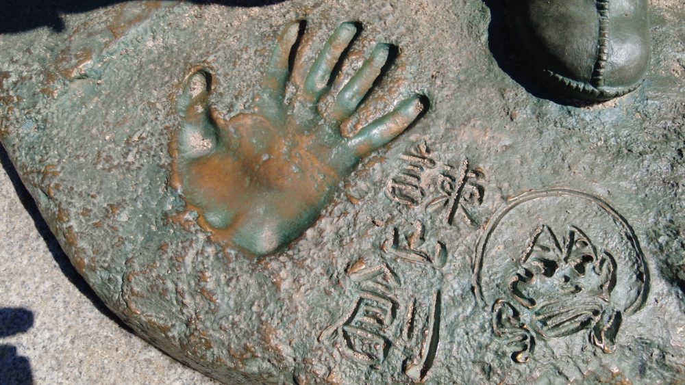 作者の諫山創さんの手形とサイン発見!どうやらこの手形に自分の手を合わすと願いが叶うという噂。私もしっかり手形に自分の手を重ねました、がっ!