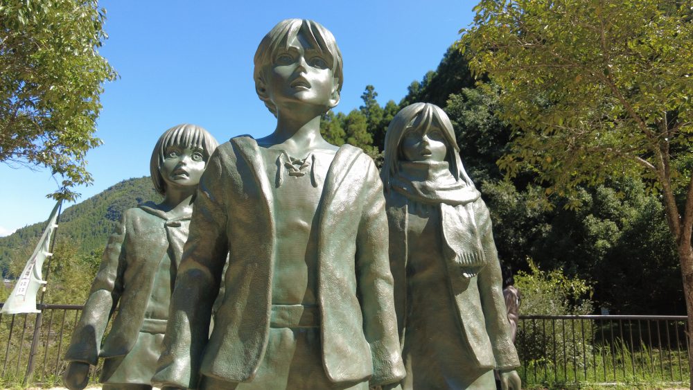 そんな日田市に「進撃の巨人ミュージアム」。あの”壁”を彷彿とさせるダムに主人公達の銅像があったり、ファンにはたまらない聖地として世界から多くの人が訪れています。