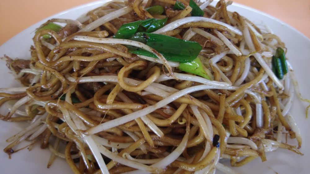 茹でた生麺を鉄板でパリパリになるまで焼き上げます。具材はもやしと豚肉、ねぎを甘辛い秘伝のソースで絡めて食べます。麺の香ばしいパリパリ食感ともやしのシャキシャキ食感が特徴です。