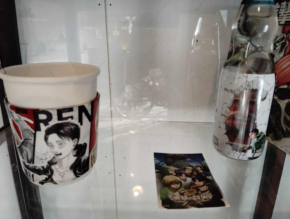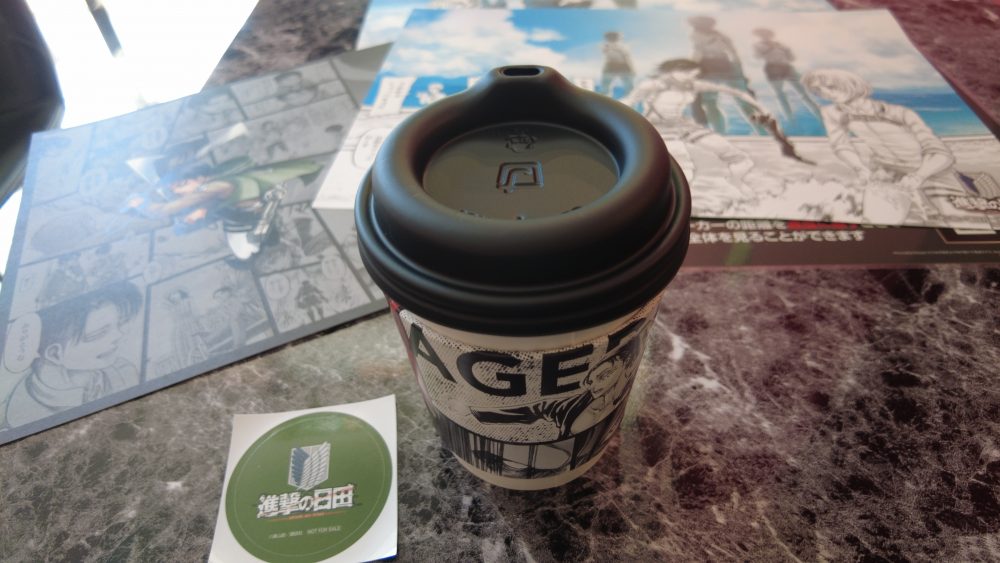 ドリンク1杯660円。ここはファンなら是非訪れたい。それはなんとドリンクオーダーすると、進撃のカップホルダー+ステッカー+ランチョンマット2枚をもらえます!