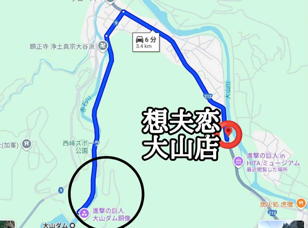 続いて大山ダムから車で約6分(距離約3km)先に行きましょう。