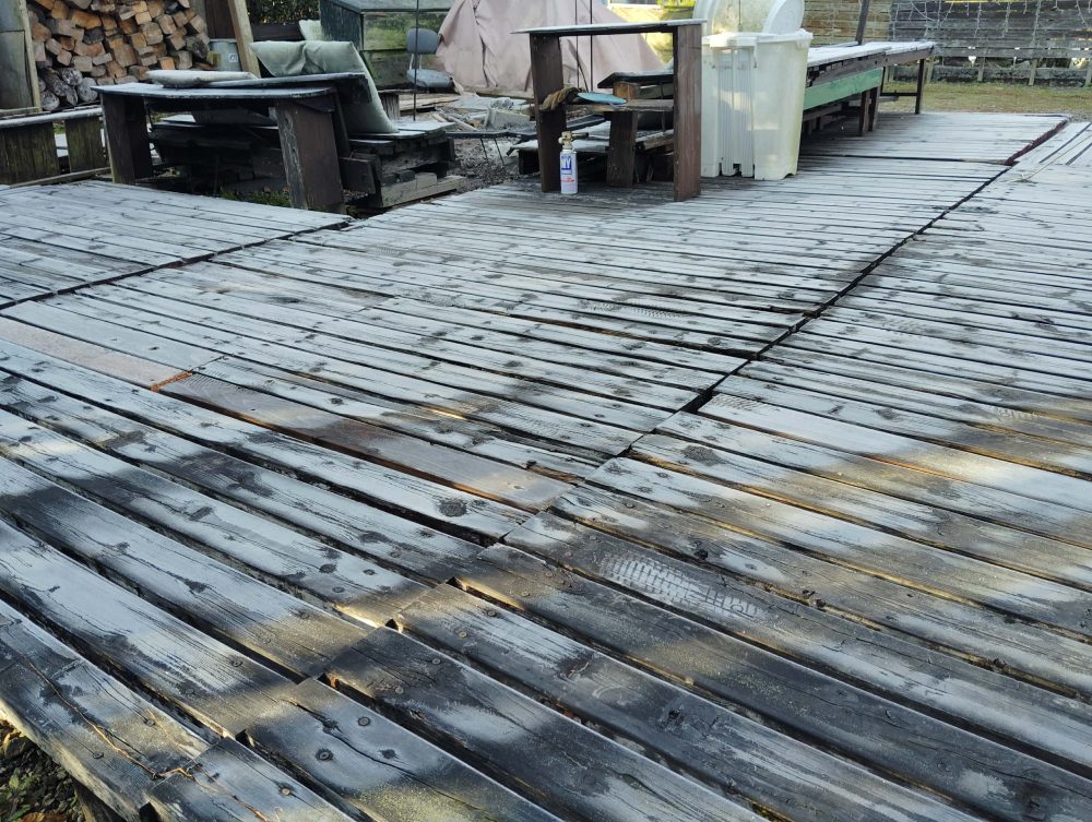 朝は氷点下。ウッドデッキもキンキンに白いですが・・・