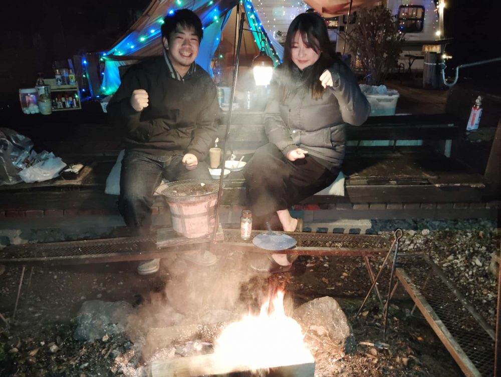 七輪BBQを楽しみに来てくれたお二人。思う存分焚き火と共にバーベキューお楽しみ頂きました。