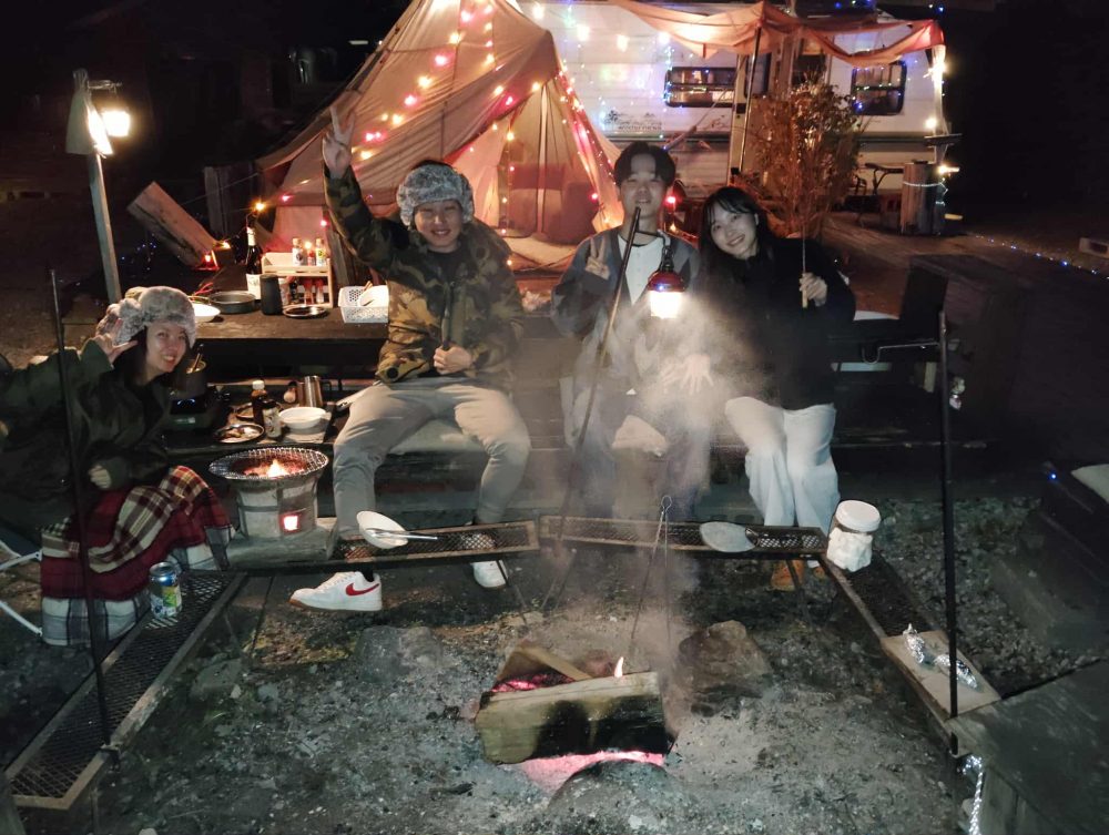 そして焚き火に自然と集まるとみんな仲良し!