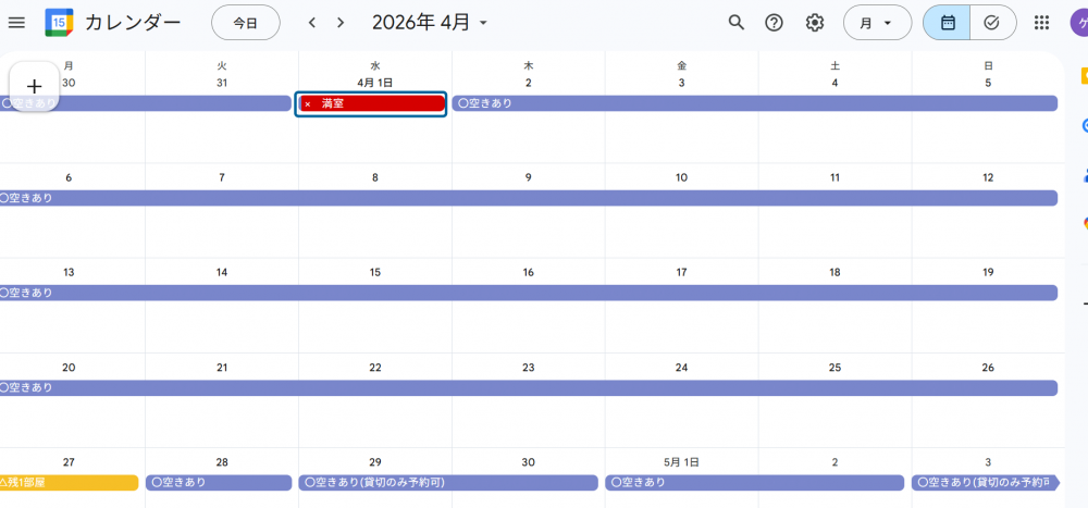 3.1日3組限定!すべて個室対応にてゆとり持った滞在。