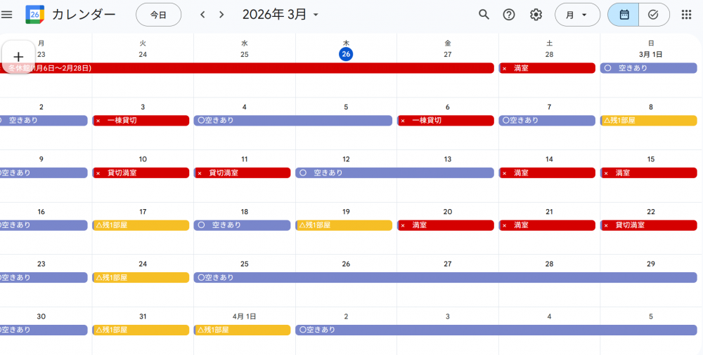 冬休館中もタイムリーに空室状況を更新していきます