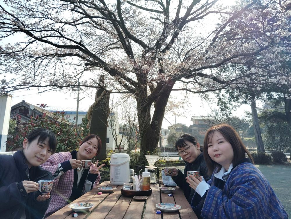 朝のドリンクサービスも桜の木の下特等席にて。これ桜が散るまでの限定です!お楽しみに!!
