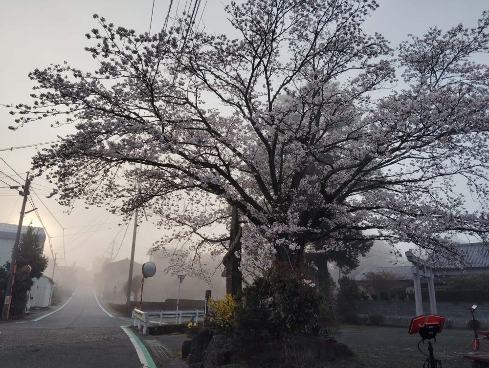 昨日、一気に開花進み阿蘇び心前の神社の桜満開を迎えました!