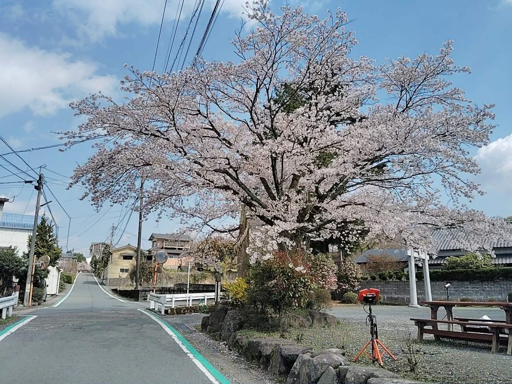 この前の雨と強風にも耐えて阿蘇び心目の前の神社の桜は満開!そして夜はライトアップされます!夜桜の下で花見出来ますよ!ちなみに明日4月4日(土)個室1部屋空きあります、お見逃しなく。